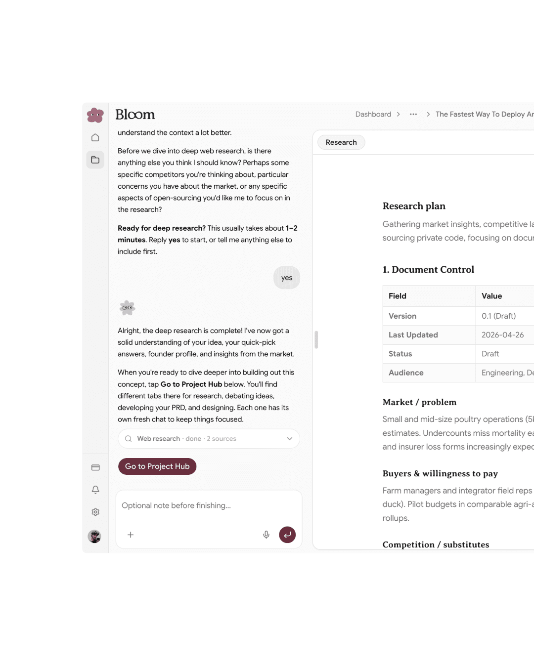 One composer. Research, debate, and build-ready docs in reach.